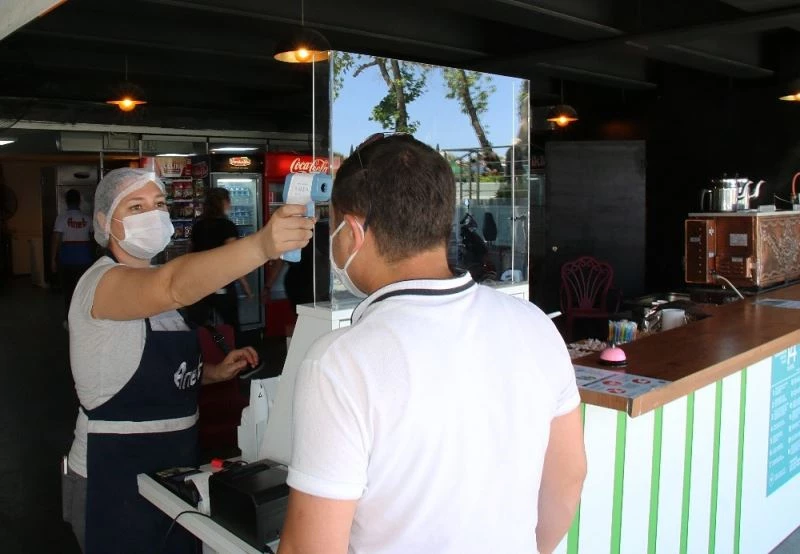 Büyükşehir Belediyesi’nin Atatürk Parkı içerisinde bulunan EKDAĞ Sosyal Tesisleri alınan önlemlerin ve yapılan düzenlemelerin ardından misafirlerini ağırlamaya başladı. Masaların sosyal mesafe kurallarına uygun şekilde düzenlendiği sosyal tesis içerisinde misafirler için sosyal mesafe uyarı levhaları asıldı. Tesis girişinde hijyen standı kurularak misafirlerin ellerini dezenfekte etmesi sağlanıyor. Yeni kurallar gereği mesai öncesi ve belirli aralıklarla her personelin ateşi ölçülüyor. Maske takan personeller servis esnasında mesafe kurallarını koruyarak servislerini gerçekleştiriyor. Aynı aileden olmak şartıyla 4 kişinin tek masada yemek yiyebildiği sosyal tesise gelen misafirler hem deniz manzarasını hem de tesisin lezzetlerini özlediklerini söyledi.