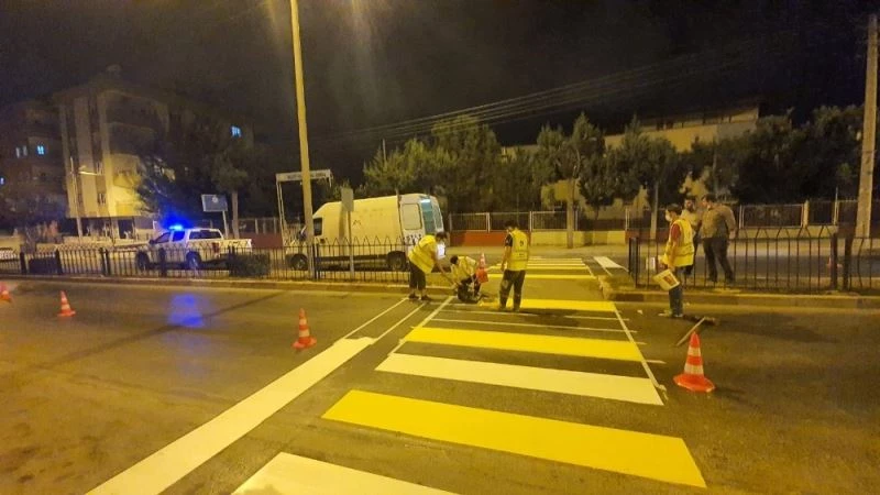 Büyükşehir Belediyesi yol çizgi ve yaya geçidi çalışmalarına devam ediyor