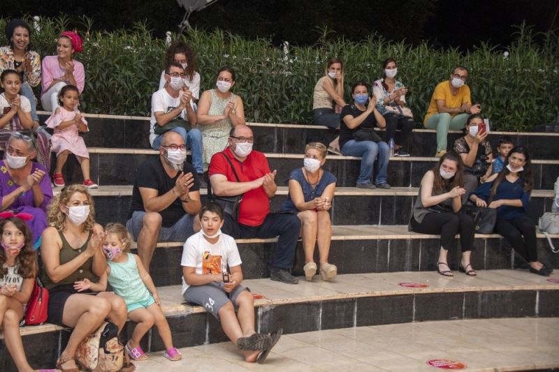 Merkez Yenişehir ilçesinde Kültür Park içinde yer alan amfi tiyatroda sosyal mesafe kurallarına göre oturan Mersinliler, tiyatro sanatçısı Zakoğlu’nun bir anlamda kabare kültürünü yansıttığı “Komik Gazino” isimli gösterisinde hem 80’ler ve 90’ların unutulmaz şarkılarını dinledi hem de gösteriye dahil oldu. İnteraktif geçen gösteride tiyatrocuyla diyalog halinde olan Mersinliler, kimi zaman kahkahaya boğuldu kimi zaman duygulandı.