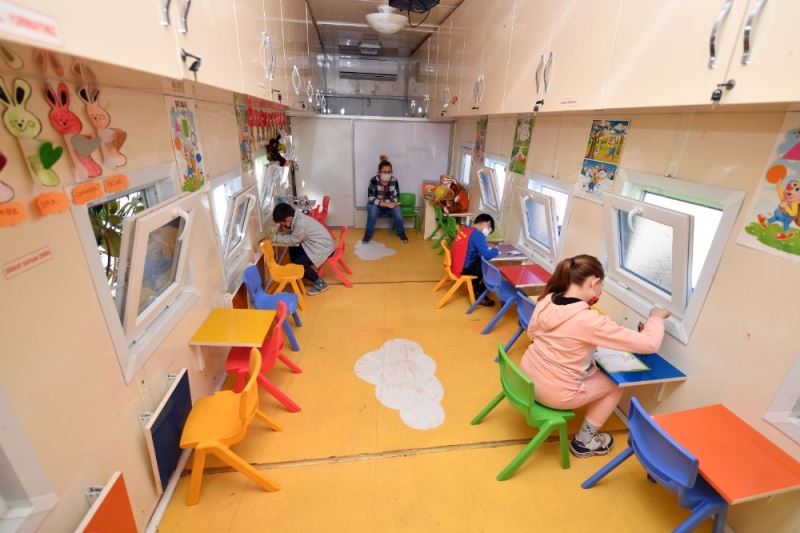 İzmir Büyükşehir Belediyesi Sosyal Projeler Dairesi Başkanlığına bağlı olarak çalışan ve Gezici Çocuk Dünyası tırında görev yapan çocuk gelişim öğretmeni Zeliha Uçan, “Burada çocuklarla oyun oynuyoruz, şarkı söylüyoruz. Resim boyama, hikaye kitaplarımız, oyuncaklarımız geldi. Üç çocuk gelişim öğretmeni, bir psikolog görev yapıyor. Çok talep var, dönüşümlü olarak biz her çocuğa ulaşmaya çalışıyoruz” dedi. Her türlü pandemi önleminin de alındığını söyleyen Uçan, "burası 20-25 çocuk kapasiteli ama biz bir defada içeriye 10 çocuk alıyoruz. Girerken galoş giydiriyoruz. Ateşlerini ölçüyoruz. İçerisini sürekli dezenfekte ediyoruz. Zor bir dönemden geçiyoruz ama önceliğimiz sağlık olduğu için her türlü önlemi alıyoruz” şeklinde konuştu.