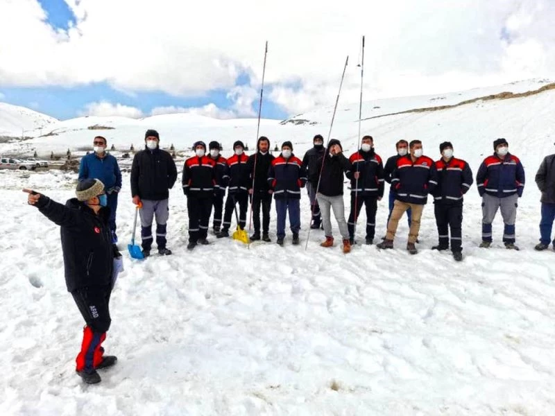 Yedikuyular Kayak Merkezi’nde düzenlenen eğitimlerde ekiplere teknik arama kurtarma teçhizatları, karla mücadele teorik bilgileri ve bölge topografyasına ilişkin bilgiler aktarıldı.
