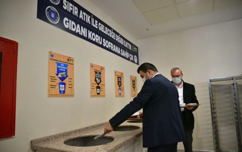 Tarım ve Orman Bakanlığının ‘Gıdanı Koru Sofrana Sahip Çık’ projesini desteklemek ve israfın önüne geçmeyi hedefleyen Büyükşehir Belediyesi, benzer bir uygulamayı hizmet binasındaki yemekhanede de hayata geçirdi. Yaklaşık 900 personelin çalıştığı yeni hizmet binasının yemekhanesinde yılın ilk 10 ayında ortalama 725,70 kilogram ekmek ve 1909 kilogram ambalaj atığı oluşurken, yapılan uygulama ile bu atıkların da geri kazanımı sağlanmış olacak. Yemek ve ekmek artıklarının hayvanat bahçesi ve hayvan barınaklarında değerlendirilip, diğer atıkların da geri dönüşümünün sağlanması amacıyla yapılan uygulamada yemekhaneye 4 ayrı kategoride atık kutuları yerleştirildi. Yemeğini yiyen personel, plastik ve meşrubat şişeleri, kağıt, karton, cam, metal gibi geri dönüşen atıkları ayrı, ıslak mendil, kürdan, peçete ve tek kullanımlık çatal, kaşık, bıçak gibi geri dönüşemeyen atıkları ayrı, ekmek atıkları ve yemek atıklarını da ayrı kutulara dökerek gıda atıklarının sıfırlanmasına da katkı veriyor.