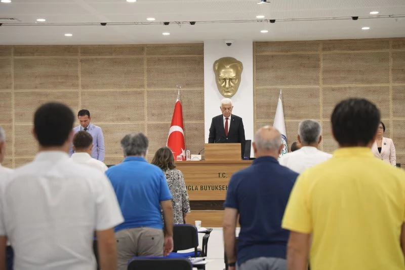 Muğla Büyükşehir Belediye Başkanı Dr. Osman Gürün tüm meclis üyelerini Marmaris yangınında yangın ekiplerine su taşırken şehit olan Şahin Akdemir, Manavgat yangınlarında şehit olan orman işçileri Erdal Tokla ve Yaşar Cinbaş için saygı duruşuna davet etti. Saygı duruşunun ardından mecliste 24 gündem maddesi görüşüldü ve 21 adet karar alındı.
