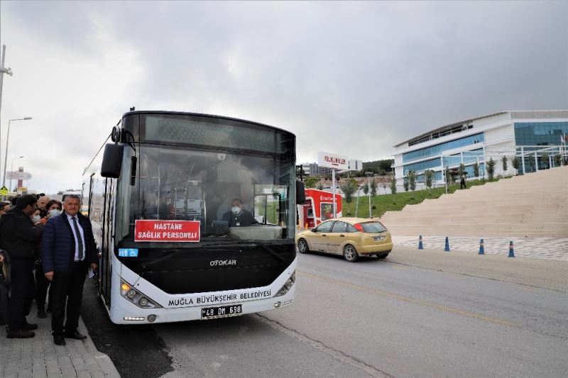 Muğla Büyükşehir Belediyesi, korona virüs salgını tedbirleri kapsamında Muğla il genelinde sağlık çalışanlarına yönelik 11 ilçede 14 resmi plakalı otobüs ile sürdürdüğü ücretsiz servis hizmetini 31 Aralık tarihine kadar uzattı. Belediyenin 20 Mart 2020 tarihinden bugüne 53 bin 132 kez sağlık çalışanlarını taşıdığı açıklandı.