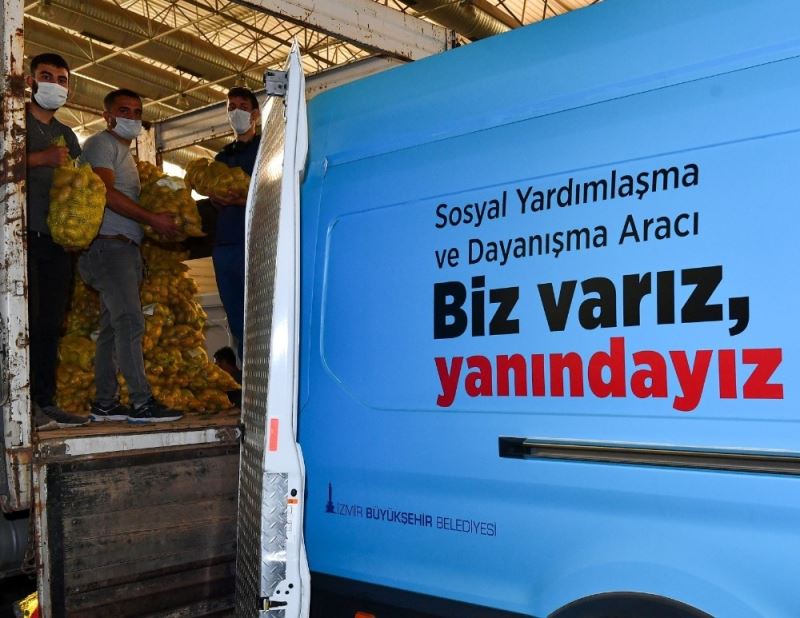 İzmir Büyükşehir Belediyesi, tarımsal üretimi artırmak için kooperatif çatısı altında örgütlenen üreticiyi desteklemeye devam ediyor. Ödemiş’teki Çaylı Beldesi Tarımsal Kalkınma Kooperatifinden 100 ton patates alan Büyükşehir, 10 kiloluk patates paketlerini destek olunması gereken 10 bin aileye dağıtmaya başladı.
