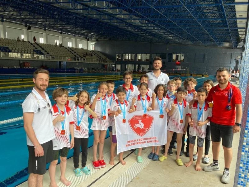 Türkiye Yüzme Federasyonu’nun düzenlediği 10 Yaş Ulusal Gelişim Projesi Ligi Grup Müsabakaları hafta sonu Çanakkale’de yapıldı. Müsabakalara 15 sporcu ile katılan Denizli Büyükşehir Belediyespor sporcuları başarılarıyla bir kez daha Denizlilileri gururlandırdı. Müsabakalarda Denizli Büyükşehir Belediyespor Yüzme Takımı sporcuları Osman Yağız Gökgöz 200 metre serbest stil, Mehmet Eren Aytekin 50 metre kurbağa stil, Mehmet Sarhanlı ise 100 metre sırt stilde altın madalya kazandı. Takım yarışlarında Denizli Büyükşehir Belediyespor yüzme takımının başarılı sporcuları, 4x50 metre karışık mix bayrak takımı, 4x50 metre serbest mix bayrak takımı ve 4x50 metre serbest bayrak takımı müsabakalarda toplamda 7 gümüş madalya almaya hak kazandı. Katıldıkları branşlarda en az iki baraj geçen 15 sporcu toplamda 26 madalya kazanırken, 4 x 50 metre serbest bayrak erkek takımı genel sıralamada Türkiye 4’ncüsü, 4x50 karışık mix bayrak takımı genel sıralamada ise Türkiye 7’ncisi oldu.