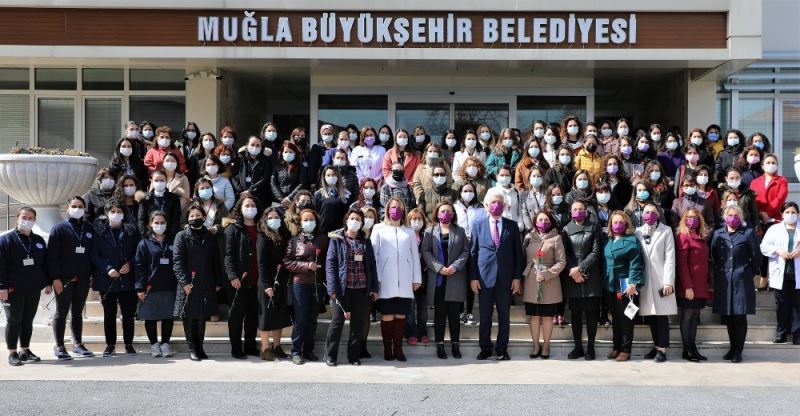 Muğla Büyükşehir Belediye Başkanı Dr. Osman Gürün, 8 Mart Dünya Kadınlar Günü nedeniyle belediyenin çeşitli birimlerinde yönetici ve personel olarak görev yapan kadın çalışanlarıyla bir araya geldi. Başkan Gürün, kadın yönetici ve personelin 8 Mart Dünya Emekçi Kadınlar Günü’nü kutlayarak, çiçek verdi.