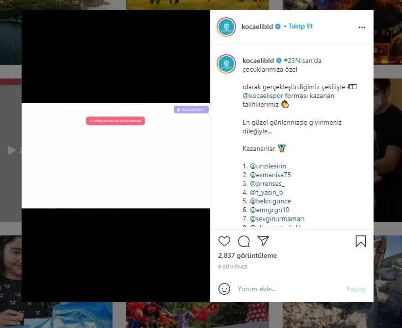 Kocaeli Büyükşehir Belediyesi, Kocaelispor’a destek vermek amacıyla sosyal medya üzerinden yapılan çekilişle 41 kişiye Kocaelispor forması hediye etti.