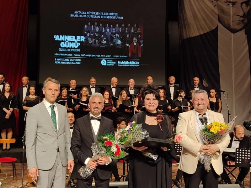 Antalya Büyükşehir Belediyesi İsmail Baha Sürelsan Konservatuvarı ‘Anneler Güne Özel’ konseri düzenledi. Halk müziği sanatçılarından Nursaç Doğanışık, şarkılarını anneler için seslendirdi. Büyükşehir Belediyesi ayrıca anneler için çiçek dağıttı.