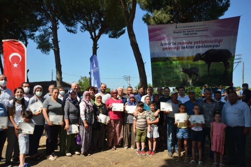 İzmir Büyükşehir Belediyesi, üreticilere destek vermeyi sürdürüyor. Büyükşehir, manda yetiştiriciliğinin yeniden can bularak İzmir mozerellasının dünya markası haline gelmesi amacıyla 2 yıl önce başlattığı destek programı kapsamında bu kez Bergama’da 134 Anadolu mandasını 39 üreticiye hibe etti.