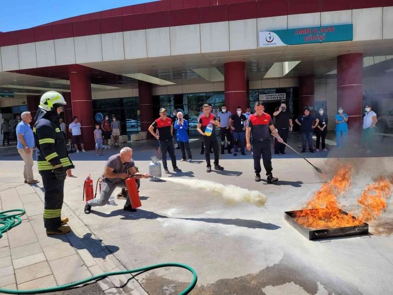 Yangın eğitiminde ayrıca hastanelerde meydana gelen yangınlara da değinilerek yangın öncesi ve esnasında yapılması gerekenler, yangın anında nasıl hareket edileceği, hangi sınıf yangının ne tür yangın söndürme maddesiyle söndürülebileceği ve ekip çalışması gibi konular da aktarıldı.