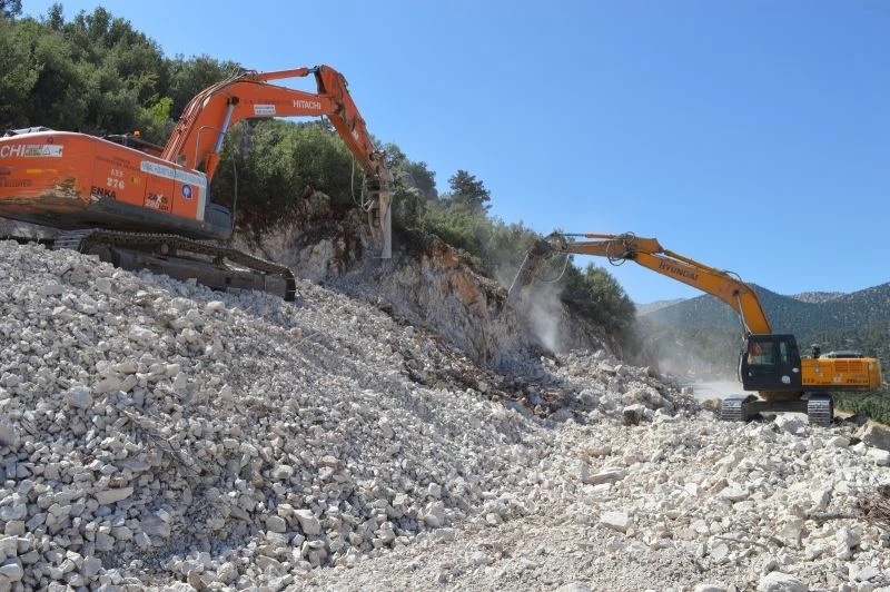 Antalya Büyükşehir Belediyesi Korkuteli’nde yol genişletme ve asfalt çalışmalarını sürdürüyor.