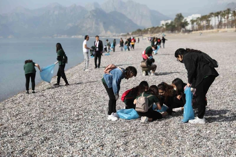 Antalya Büyükşehir Belediyesi kıyıların ve denizlerin korunmasına yönelik farkındalık oluşturma amacıyla çalışmalarını sürdürüyor. ‘Deniz Bizim, Plaj Bizim, Çöpümüze Sahip Çıkalım’ sloganıyla Konyaaltı sahilinde Naciye Havva Manavuşak Ortaokulu’ndan 120 öğrencinin katılımıyla kıyı temizliği gerçekleştirildi. İkili gruplara ayrılan öğrenciler, tüm sahili dolaşarak bulabildikleri çöpleri topladı. Cam, plastik, metal, maske ve izmarit gibi çöpler ayrıştırılarak sahilde sergilendi.