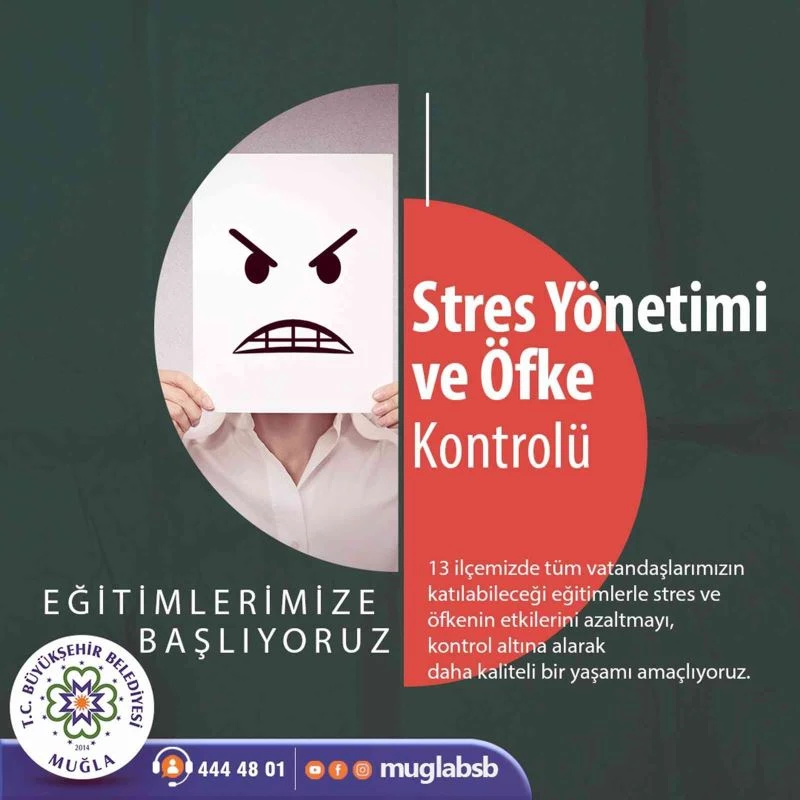 Muğla Büyükşehir Belediyesi’nden stres ve öfke kontrolü eğitimi için yapılan açıklamada; “Kontrolsüz öfkenin hem birey, hem de toplum üzerinde büyük bir etkisi bulunmaktadır. Öfke, genellikle suça ve şiddete yönelik davranışlarla kendini göstermektedir. Bu sebeple öfke doğru anlaşılması gereken ve kontrolü önemli olan bir kavramdır. Öfke gibi stresin de doğru anlaşılması gerekmektedir. Stres yalnızca negatif tarafıyla bilinmesine karşın, pozitif yönleri ve avantajları da olabilmektedir. Verilecek eğitimlerle stresin olumsuz etkilerini kontrol altında tutmaya yardımcı olacak teknikler ve alıştırmalar katılımcılara sunulacak. Kontrol edilemeyen stres ve öfke günlük yaşamı ve iş yaşamını olumsuz etkilemektedir. Bu eğitimde stres ve öfke nedenlerini ortadan kaldırmak veya kontrol altına almak, stresin ve öfkenin etkilerini azaltmak, bireylerin karşılaşabilecekleri öfke ve stres durumuna karşı daha güçlü kılarak dirençlerini arttırmak amaçlanmaktadır” denildi.