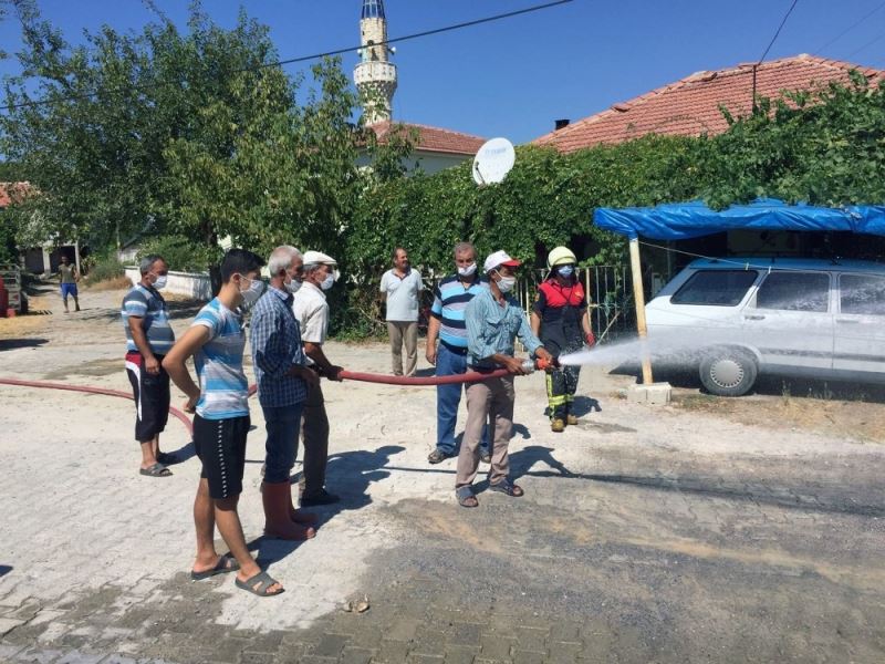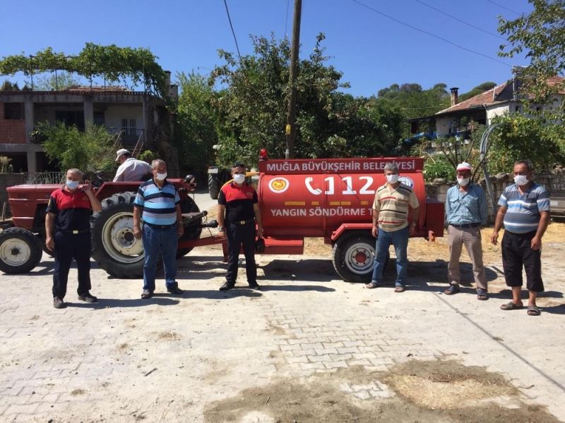 Muğla Büyükşehir Belediyesi İtfaiye ekipleri yangına ilk müdahale tankeri verilen her mahallede muhtara ve köydeki vatandaşlara herhangi bir yangın anında tankerle nasıl müdahale edeceklerini konusunda eğitim veriyor ve uygulamalı olarak da gösteriyor.