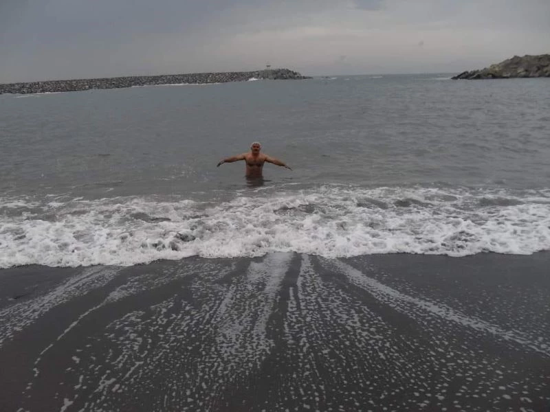 Zonguldak’ta "Buz Adam" lakaplı Atanur Öner, 7 derece sıcaklıkta denize girerek buz gibi havaya meydan okudu.