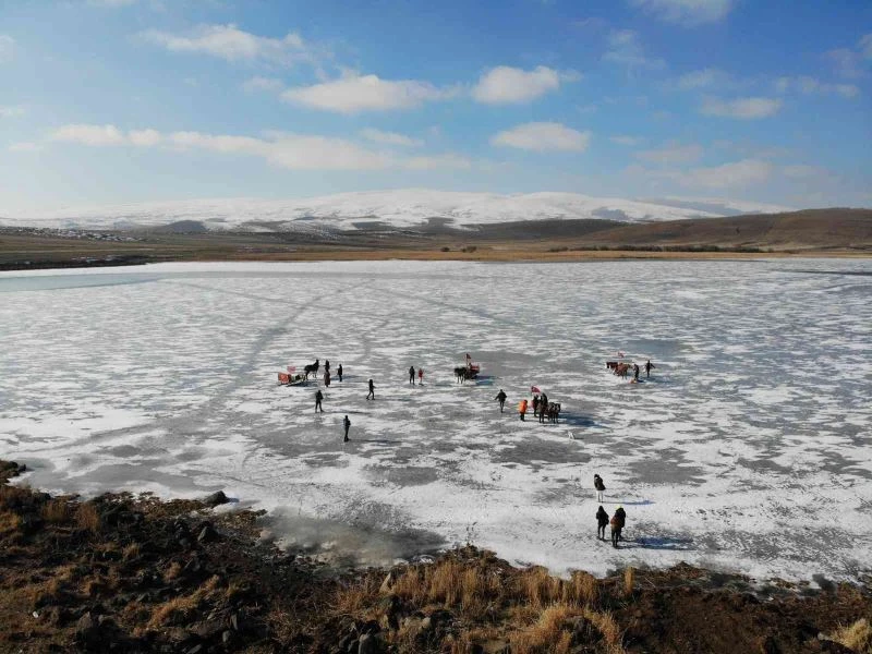 Kars tarafı buz tutan Çıldır Gölü’ne atlı kızaklarını indiren kızakçılar ise buz üzerine çıkan vatandaşların atlı kızaklarla fotoğraf çekilmelerine izin verdi. Yeteri kalınlığa ulaşmadığı için atlı kızak seferleri yapmayan kızakçılar, vatandaşların yoğun ilgisiyle karşılaştı.