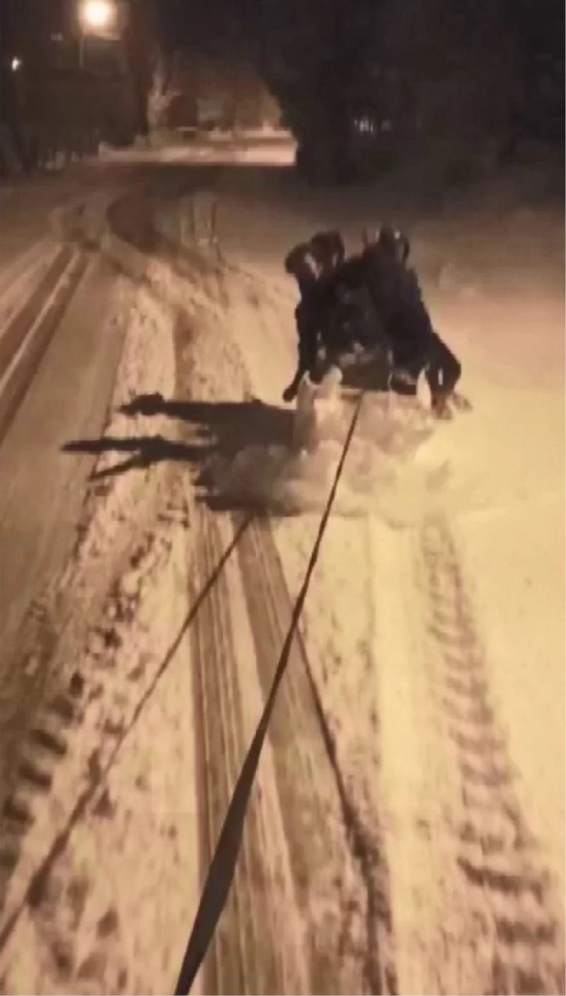 Sivas’ın Zara ilçesinde yaşayan bir grup genç ise kar yağışını eğlenceye çevirdi. Kafadar arkadaşlar traktörün arkasına bağladıkları buzdolabının içine girip karla kaplı sokaklarda kayarak doyasıya eğlendi. O anlar ise cep telefonu kamerasına yansıdı.