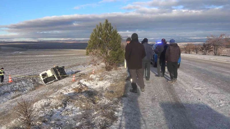 Kırıkkale’de taş ocağına işçi taşıyan minibüsün buzlanan yolda kontrolden çıkarak şarampole devrilmesi neticesinde meydana gelen kazada 1 kişi hayatını kaybetti, 7 kişi ağır yaralandı.