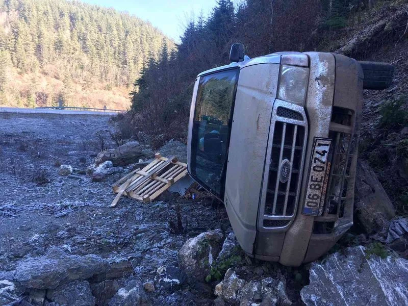 Kastamonu’nun Daday ilçesinde buzlanan yolda kayan kamyonet, şarampolde devrildi. Kazada sürücü yaralandı.