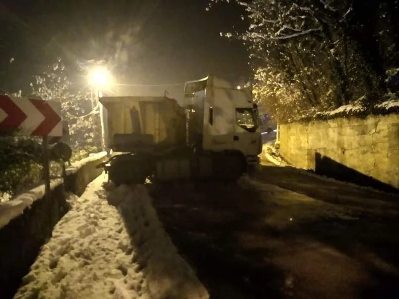 Zonguldak’ın Kilimli ilçesinde yolda oluşan buzlanma nedeniyle direksiyon hakimiyetini kaybeden üır sürücüsü duvara çarptı.
