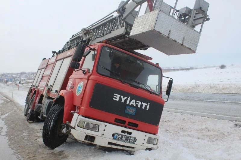 Tekirdağ’da bir olaya giden itfaiye aracı buzlu yolda kontrolden çıkarak devrildi.