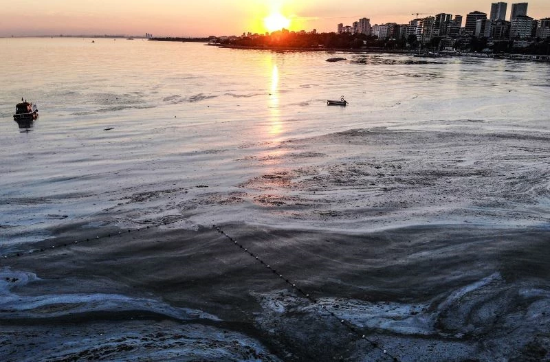 Son aylarda Marmara Denizi’nde oluşan denizin dibini ve yüzeyini kaplayan deniz salyası havadan görüntülendi. İstanbul sahillerinde yoğunluğunu artıran deniz salyası, Caddebostan sahil şeridini adeta kaplarken, havadan çekilen görüntülerde deniz salyasının etkisi altına aldığı alanın büyüklüğünü gözler önüne serildi.