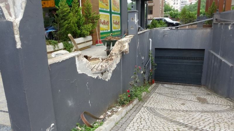 Caddebostan’da garaj boşluğuna düşen otomobil kamerada