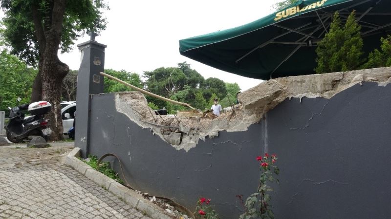 Güvenlik kameralarına yansıyan görüntülerde otomobilin önce bir dükkanın önündeki cam korkuluğuna çarpıyor ardından da bir binanın bahçe duvarına çarptığı görülüyor. Aşırı hızın etkisiyle otomobilin tekerinin yerinden fırladığı görülüyor.