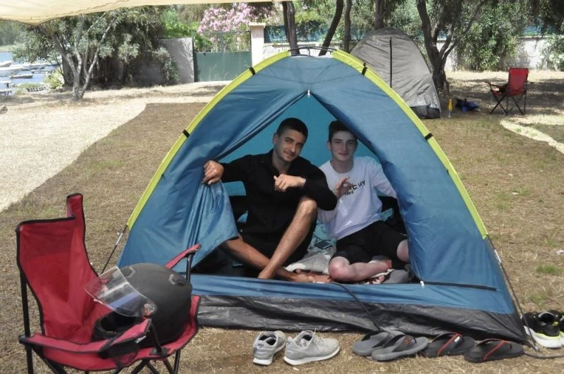 Kocaeli’nden motosiklet ile gelen Erkut Başaran (20) ve Ömer Duran (20) "İlk defa çadır tatiline çıktık bundan sonra da sürekli çadırda tatil yaparız. Yanımızda dezenfektanlarımız, maskelerimiz var. Sosyal mesafe kurallarına da uyuyoruz" diyerek keyifli bir çadır tatili yaptıklarını söylediler.