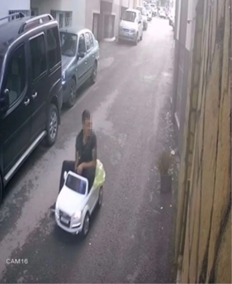 Sivas’ta yetişkin bir hırsız çalmak istediği akülü çocuk aracını taşıyamayınca içerisine binip sürerek uzaklaştı.