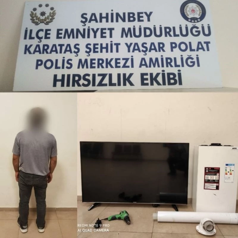 Gaziantep’te bir evden televizyon ve buzdolabı çalan hırsız, çaldıkları malzemelerle birlikte yakalandı.