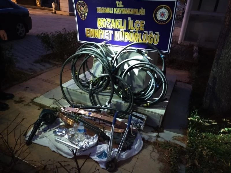 Edinilen bilgiye göre olay Kozaklı ilçesinde yaşandı. Bir otelden hırsızlık yapıldığı ihbarı üzerine olay yerine polis ekipleri sevk edildi. Polis ekiplerinin geldiğini gören şüpheliler araçla olay yerinden kaçmaya çalıştı. Polis ekiplerinin sıcak takibi sonrasında araç ilçe dışında durduruldu. Araçta yapılan aramada yaklaşık 100 kilo ağırlığında çalıntı bakır kablo ve bakır plakalar ele geçirildi. Araçta bulunan Z.A. ve H.İ.Ş. şahıslar polis ekipleri tarafından gözaltına alındı.