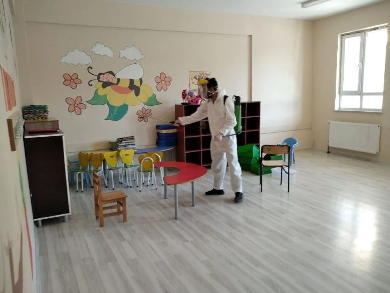 Çaldıran Belediyesi ekipleri, 22’si ilçe merkezinde olmak üzere toplam 118 okulda eğitim öğretim öncesi dezenfekte çalışması başlattı. 21 Eylül’de anaokulu ve 1. sınıf öğrencilerinin eğitime başlayacak olması nedeniyle harekete geçen Çaldıran Belediyesi Park ve Bahçeler Müdürlüğü ekipleri, ilçede bulunan 118 okulda dezenfekte çalışmasını aralıksız sürdürüyor.