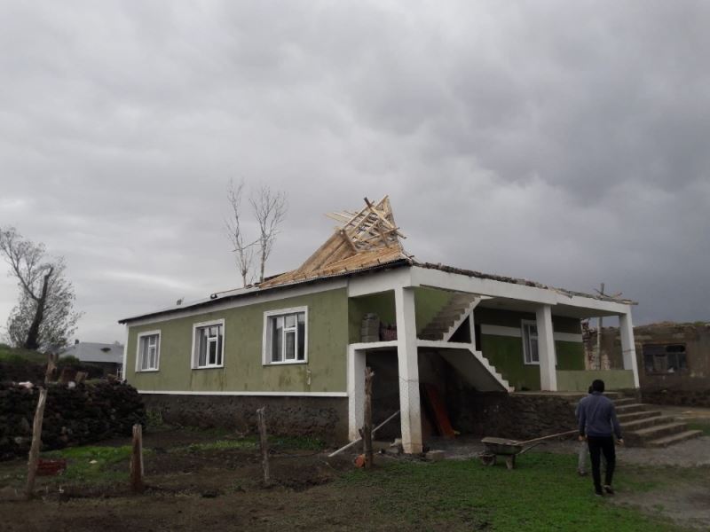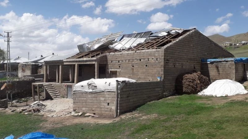 Van’ın Çaldıran ilçesinde etkili olan fırtına nedeniyle birçok evin çatısı uçtu.