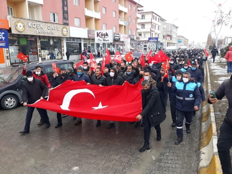 Van’ın Çaldıran ilçesinde bir araya gelen yüzlerce kişi, Irak’ın Gara bölgesinde terör örgütü PKK tarafından silahsız 13 güvenlik görevlisinin şehit edilmesini protesto etti.