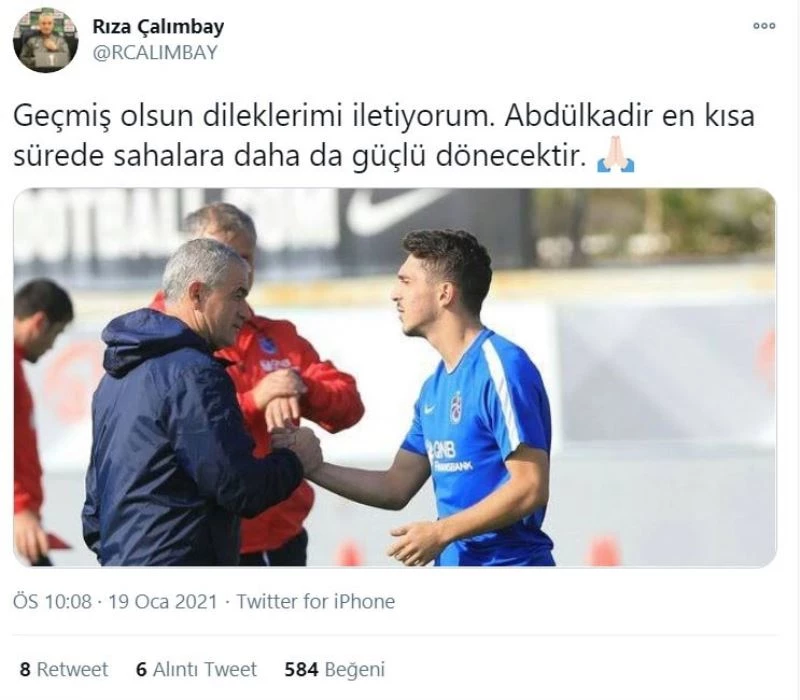 “Geçmiş olsun dileklerimi iletiyorum. Abdülkadir en kısa sürede sahalara daha da güçlü dönecektir.”