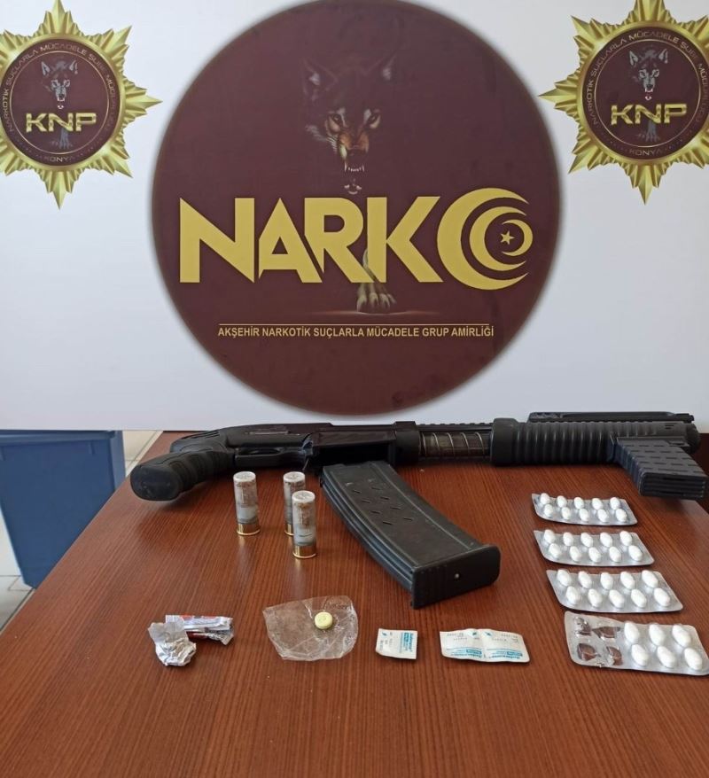 Edinilen bilgiye göre, Akşehir İlçe Emniyet Müdürlüğü Narkotik Suçlarla Mücadele Grup Amirliği ekipleri, motosiklet hırsızlıklarında motosikletlerin uyuşturucu karşılığı verildiğini tespit etmesi üzerine şüphelilerin Yeni Mahalle’deki evlerinde arama yaptı. Evlere yapılan baskında 40 uyuşturucu hap, 1 gram esrar, 1 adet ruhsatsız av tüfeği, 3 kartuş ve 4 adet motor numarası ve şase numarası olmayan motosiklet ele geçirilirken, 6 şüpheli gözaltına alındı. Şüphelilerden 4’ü Akşehir İlçe Emniyet Müdürlüğünde alınan ifadelerinin ardından serbest bırakılırken, H.G. ve F.K. mahkemeye sevk edildi. İki şüpheli çıkarıldıkları mahkeme tarafından denetimli serbestlik kararı ile serbest bırakıldı.