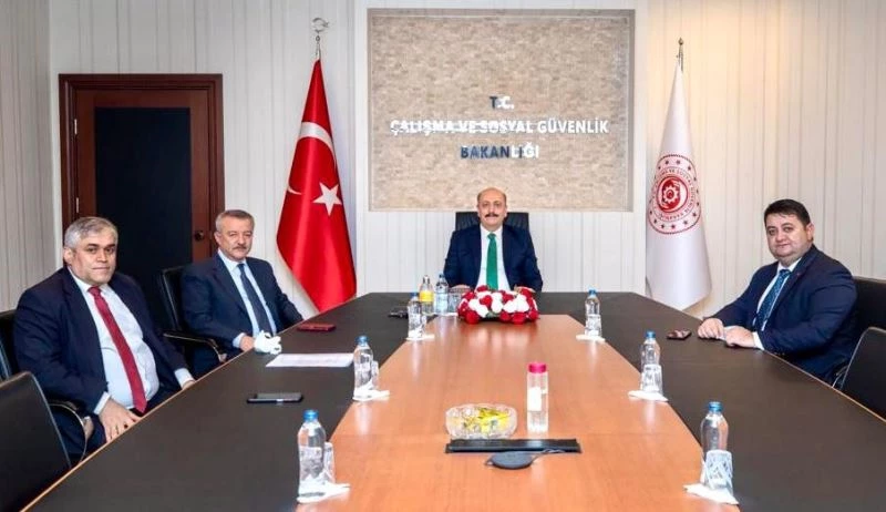 Genel Maden İşçileri Sendikası (GMİS) Genel Başkanı Hakan Yeşil ile Zonguldak Maden Şehitleri Derneği Başkanı Çetin Yiğit, Çalışma ve Sosyal Güvenlik Bakanı Prof. Dr. Vedat Bilgin’i ziyaret etti.