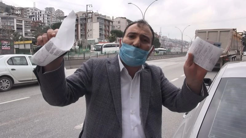 Kocaeli’de kısıtlama denetimleri kent genelinde sürdürülüyor. Hafta sonları uygulanan 2 günlük sokağa çıkma kısıtlaması sebebiyle trafik polislerince İzmit ilçesi D100 karayolunda denetim gerçekleştirildi. Denetimde araçlarındaki cam filmi ile yola çıkan 8 sürücüye kişi başı 314 TL’den toplamda 2 bin 512 TL para cezası uygulandı. Ceza uygulanan sürücülerden Zeki Öztürk, polis ekiplerine tepki gösterdi. Böyle bir uygulamadan haberi olmadığını savunan Öztürk, "Değerli vatandaşlarım, değerli dostlarım günde 50 kez yoldayım. Hiçbir suçumuz yok. Hiçbir sıkıntımız yok. Bütün trafik kurallarına uyuyoruz. Trafik memuru önümüzü kesti, ’Arabada cam filmi var’ diyor. Cam filmi var mı yok mu onu da bilmiyoruz. Selam vermeden, bir şey vermeden bize ceza kesiyorlar. Nasıl bir yerdeyiz bizde bilmiyoruz. Ben bir ceza değil 10 ceza da öderim zoruma gitmez ama böyle cezalar yazılmaz. Vatandaş önce ikaz edilir. Kafana göre yolu kes ceza yaz olmaz. Bizi ikaz edin, kurallara uymazsak 10 katı ceza yazın ama biz böyle şeylere karşıyız" dedi.