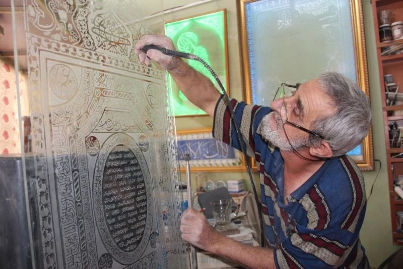 Kütahya’da, hattat Mahmut Şahin’in öğrencilerinden Mehmet Ali Tunca, cam üzere Hüsn-i Hat sanatını işleyerek, bir ilke imza attı.