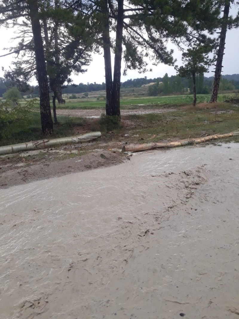 Denizli’nin Çameli ilçesinde aşırı yağıştan dolayı Yaylapınar ve Kalınkoz Mahallesi’nde biriken sular ova arazilerinde sele neden oldu. Ara ara ise dolu yağışı etkili oldu.