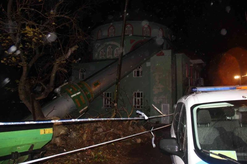 Kocaeli’de etkili olan fırtına sebebiyle bir caminin minaresi yan yatarken, bir diğer cami ise yıkıldı.