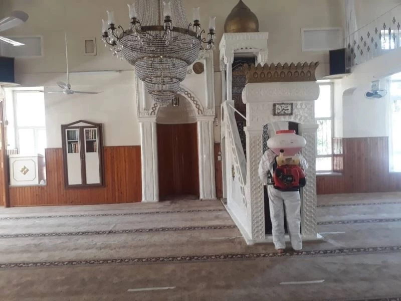 Kilis Belediyesi Temizlik İşleri Müdürlüğü tarafından İbadete yeniden açılan camilerin dezenfekte işlemleri aralıksız sürdürülüyor.