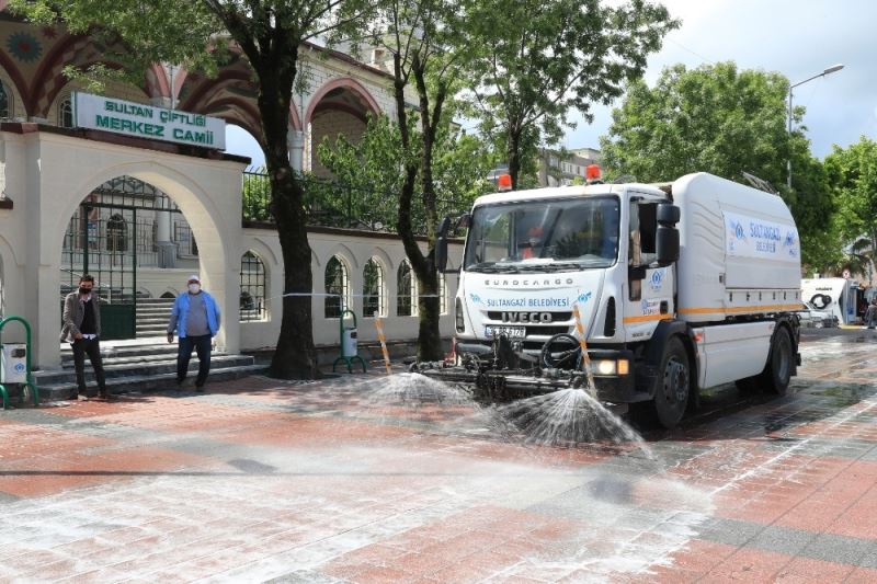 Korona virüs sebebiyle ibadete kapatılan camiler, yarın tekrar kapılarını cemaate açıyor. Kararla birlikte harekete geçen Sultangazi Belediyesi, Cuma namazı kılınacağı belirlenen ilçedeki 21 camide temizlik ve dezenfekte çalışması gerçekleştirdi.