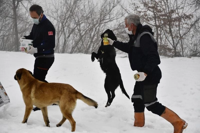 Osmangazi Belediye Çevre Koruma ve Kontrol Müdürlüğü ekipleri, kar yağışının devam ettiği Uludağ’daki sahipsiz köpeklerin aç kalmamaları için yol kenarlarına kuru ve yaş mama bıraktı. İlk kar tanesinin düştüğü günden itibaren düzenli olarak oteller bölgesine kadar çıkan belediye ekipleri, yol boyunca gördükleri can dostları elleriyle besledi. Ekipler ayrıca, Osmangazi Belediyesi’nin sahipsiz köpeklerin kış aylarını tok geçirmeleri için beş farklı noktaya yerleştirdiği beslenme odaklarının üzerindeki karları da temizledikten sonra içerisine kilolarca kuru mama koydu. Yetkililer, sahipsiz köpeklerin aç kalmalarını önlemek için yapılan mama dağıtımının, kar yerden kalkana devam edeceğini söyledi.