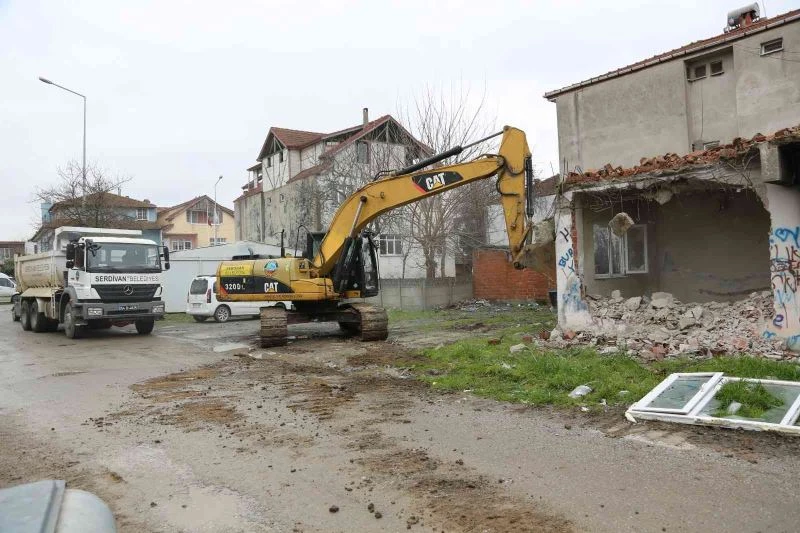 Serdivan’da can ve mal güvenliğini tehlikeye atan metruk bina belediye ekipleri tarafından yıkıldı.