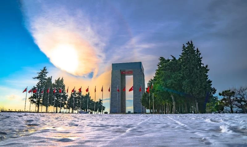 Çanakkale Şehitler Abidesi beyaza büründü