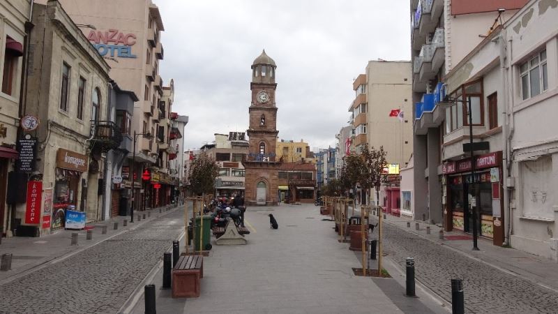 Çanakkale’de, korona virüs (Covid-19) salgınının yayılımını engellemek amacıyla uygulanan sokağa çıkma kısıtlaması nedeniyle cadde ve sokaklar boş kaldı.
