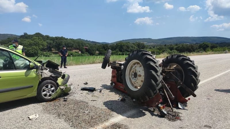 Kaza bugün saat 14.45 sıralarında Çanakkale’nin Ayvacık ilçesinde meydana geldi. Assos istikametine gitmekte olan Nadir Gültekin’in kontrolündeki 38 FS 237 plakalı otomobil, U dönüşü yaptığı öne sürülen Kamil Üreyen idaresindeki 17 DD 195 plakalı traktör ile çarpıştı.